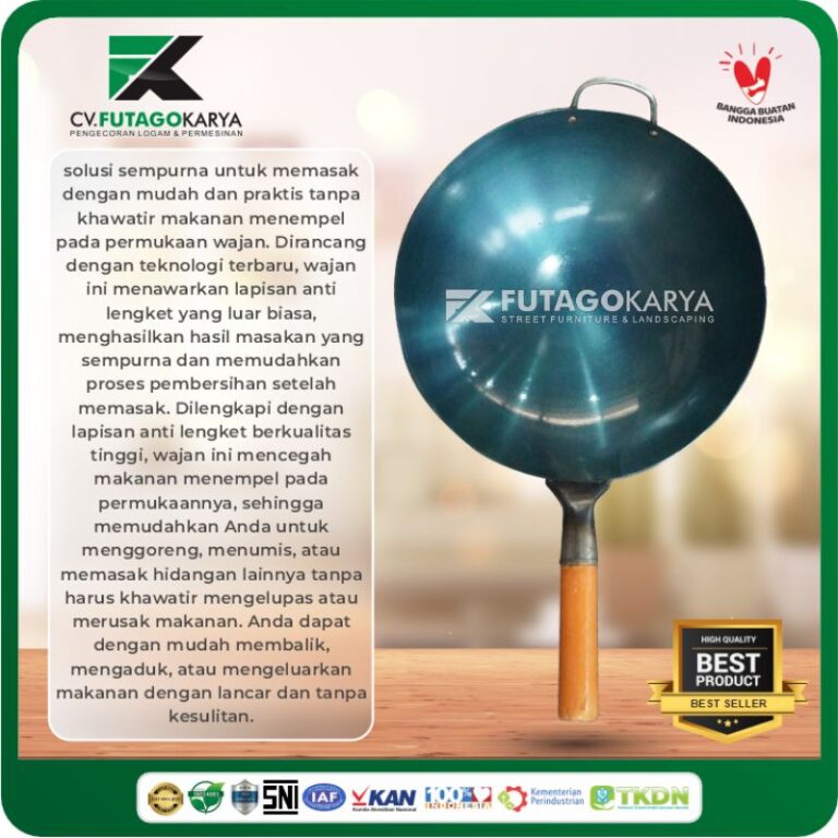 Di dunia peralatan dapur, nama Futago Karya hadir sebagai produsen terpercaya yang terus menghadirkan inovasi. Salah satu produk andalan kami adalah wajan nasi goreng anti lengket, yang kami produksi langsung dengan standar kualitas tinggi. Dengan kombinasi material aluminium yang ringan namun kuat, serta lapisan anti lengket berkualitas food grade, wajan ini tidak hanya praktis digunakan tapi juga tahan lama.