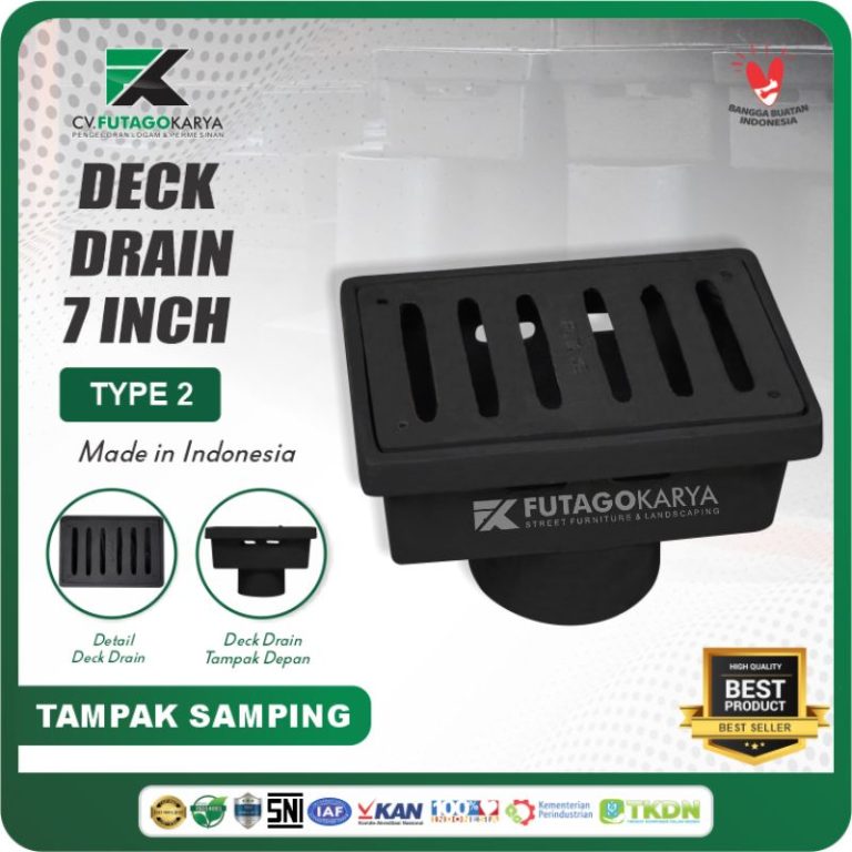 Siap meningkatkan kualitas drainase proyek Anda? Deck Drain 7 Inch Type 2 dari Futago Karya siap jadi solusi. Hubungi Futago Karya untuk konsultasi teknis dan pemesanan.