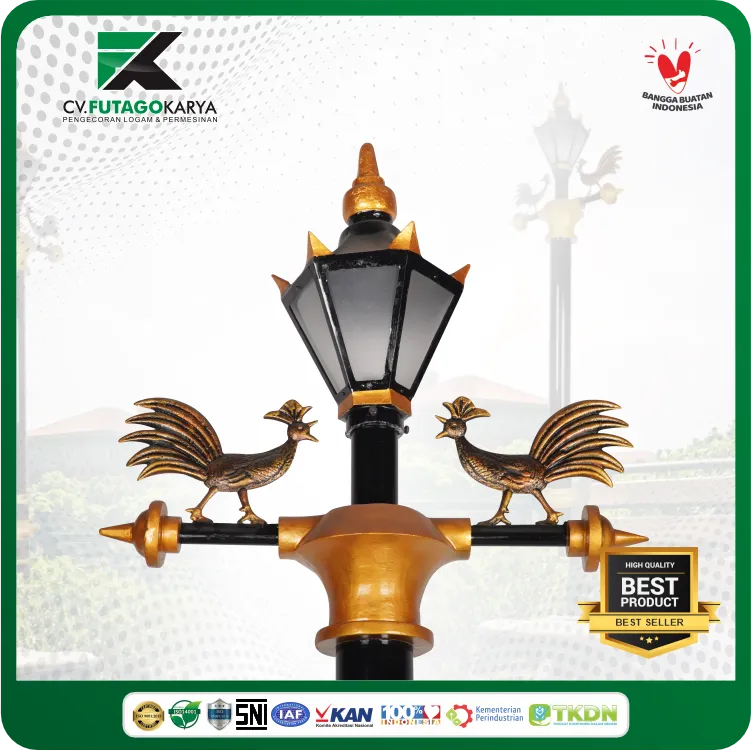 Tiang ini dirancang secara khusus oleh tim desain Futago Karya untuk memberikan sentuhan keindahan abadi. Desainnya yang khas sangat ideal untuk resort berbintang, perumahan elit, kawasan wisata sejarah, hingga revitalisasi taman kota. Kami menjamin, tiang lampu ini tidak hanya menerangi, tetapi juga menjadi titik fokus estetika yang akan meningkatkan nilai properti Anda.